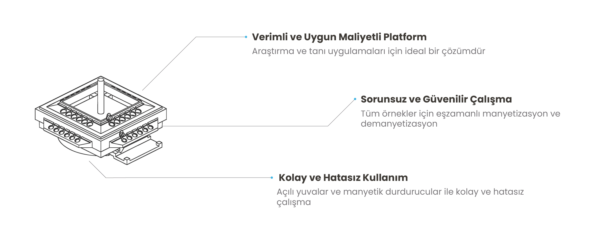 Magrev 24, manyetik boncuklu izolasyon yöntemine dayalı bir nükleik asit izolasyon standıdır ve aynı anda 24 örnek işleyebilir. Çeşitli biyolojik örneklerden DNA ve RNA izolasyonu için tasarlanmıştır ve Magrev Nükleik Asit İzolasyon Kitleri ile uyumludur.